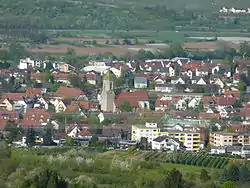 Beutelsbach was first mentioned in 1080 and was one of the oldest properties of the House of Württemberg. The first known ancestor of the Württemberg family was Konrad von Württemberg, whose nephew Konrad (son of Luitgard von Beutelsbach) further established the family.[2] The Beutelsbach Stift (or college) was probably founded in the 11th century and then later expanded by Count Ulrich I. of Württemberg. The collegiate church in Beutelsbach was the burial site of the House of Württemberg from that point until the Stift was destroyed in 1311 and moved to Stuttgart.