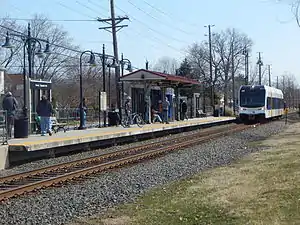 ![]() A morning train approaches Beverly/Edgewater Park station in April 2015. | |||||||||||
