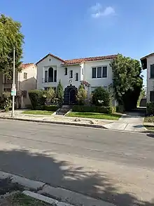 The buildings in the Beverly Fairfax district were majorly developed between 1924 and 1949.[6][7] The neighborhood's architectural styles include Spanish Colonial Revival, Mission Revival, Chateauesque, Streamline Moderne, Mediterranean Revival, Tudor Revival, Minimal Traditional, and Art Deco.[6][8] Out of 463 residences, 79% of the district's buildings contribute to its historical significance.[7]