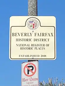 Beverly Fairfax Historic District is a neighborhood in the Fairfax District of Los Angeles that is noted for its significance to the city's Jewish history and for the area's preserved period revival architecture.[1][2][3] The district's boundaries are Rosewood Avenue, Melrose Avenue, N Gardner Street, Vista Street, Beverly Boulevard, and N Fairfax Avenue.[4][5] The district was officially recognized by the National Register of Historic Places on October 4, 2018. Efforts to recognize Beverly Fairfax as a historical district were led by Save Beverly Fairfax, a grassroots coalition of owners and residents formed in 2016 to protect the neighborhood's architectural and cultural history.[2]