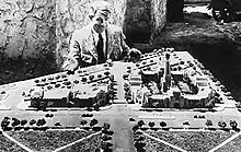 In the 1910s and 1920s, before this building was constructed, city administration services took place at the Beverly Hills Hotel.[5] However, in 1925, a two-storey building was erected on Burton Way to serve as a city hall and fire department building.[4] Yet five years later, a petition signed by 2,000 residents which was presented to the Beverly Hills City Council called for a new building in a new location.[4]