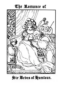 Beves of Hamtoun, also known as Beves of Hampton, Bevis of Hampton or Sir Beues of Hamtoun, is an anonymous Middle English romance of 4620 lines, dating from around the year 1300, which relates the adventures of the English hero Beves in his own country and in the Near East. It is often classified as a Matter of England romance. It is a paraphrase or loose translation of the Anglo-Norman romance Boeuve de Haumton, and belongs to a large family of romances in many languages, including Welsh, Russian and even Yiddish versions, all dealing with the same hero.[1][2][3][4]