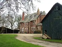 Burges designed the vicarage in 1859.[1] His patron appears to be unrecorded.[2][3] Pevsner notes the vicarage is "a somewhat surprising house to find in a small Holderness village".[1] In the following year, Burges also drew up designs for the parish church but these were not executed.[1] The vicarage is of red brick with a seven-bay frontage.[1] Anthony Jennings describes the building as in Burges's "eccentric Northern French fairytale style".[4] Its interior retains "many original features, including the staircase and a number of fireplaces".[1] The building is Grade II listed.[2]