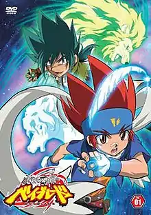Two pieces of theme music were used for the opening and closing themes. The opening theme is "Metal Fight Beyblade" (メタルファイト ベイブレード) performed by Yu+Ki and the ending theme is "Boys ~Hikari Kagayaku Ashita e~" (Boys~光り輝く明日へ~) performed by MASH.[1] The first 23 episodes were released on six DVD compilations of three to four episodes each by Sony Pictures Entertainment. The first compilation was released on July 15, 2009[6] while the sixth compilation was released on December 9, 2009.[7] The remaining 28 episodes were released on seven DVD compilations under the title Metal Fight Beyblade: Battle Bladers (メタルファイト ベイブレード バトルブレーダーズ編, Metarufaito Beiburēdo - Batoruburēdāzu-hen). The first compilation was released on January 13, 2010[8] while the seventh compilation was released on July 14, 2010.[9] Beyblade: Metal Fusion was followed by a second series titled Beyblade: Metal Masters.