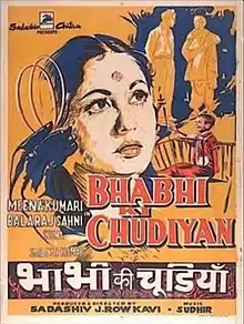 Bhabhi Ki Chudiyan is a 1961 Hindi-language drama film directed by Sadashiv J. Row Kavi, starring Meena Kumari and Balraj Sahni. It is a remake of the 1953 Marathi film Vahinichya Bangdya.