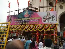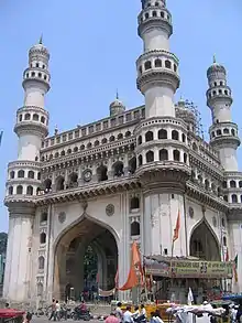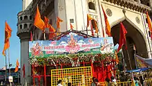 Bhagyalakshmi temple is a shrine dedicated to a Hindu goddess located in Hyderabad, India. This temple is located adjacent to the city's historic monument Charminar. Charminar is under care of Archaeological Survey of India (ASI), while a Hindu trust manages the temple dedicated to the Goddess Lakshmi. The origin of the temple is currently disputed and the current structure that houses the idol was erected in the 1960s. In 2012, Telangana High Court stopped any further expansion of the temple.[1] In 2013, ASI declared the temple structure as an unauthorised construction.[2]
