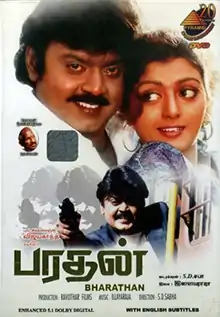 Bharathan is a 1992 Indian Tamil-language action drama film, directed by Sabapathy Dekshinamurthy and produced by A. S. Ibrahim Rowther. The film stars Vijayakanth and Bhanupriya, while S. P. Balasubrahmanyam, Anandaraj, Napoleon, Sumitra, and Chandrasekhar play supporting roles. It is a remake of the Hindi film Ghayal (1990).[2] The film was released on 16 April 1992,[3] and completed a 100-day run.[4]