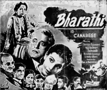 Bharathi is a 1948 Indian Kannada film directed by R. M. Veerabhadraiah. It stars Tanguturi Suryakumari, Rajkumari, Sampath, making his debut, and M. V. Krishnaswamy in the lead roles.[1] The screenplay, dialogues and songs for the film were written by M. Narendrababu.[2]