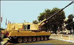 The Bhim self-propelled howitzer is a type of self-propelled artillery developed by the South African company Denel under the supervision of the Indian Defence Research and Development Organisation. It was designed to meet the Indian Army's requirements for self-propelled artillery units.[2] The howitzer is named after Bhima, one of the main protagonists and brother to Arjun of the Indian epic "Mahabharata".