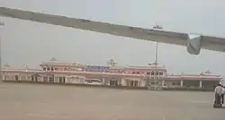 The airport has a single terminal that handles all arrivals and departures.[10] The terminal can handle 350 passengers at a time.[11] The airport has 71,920 square feet (6,682 m2) area on the ground floor and 14,880 square feet (1,382 m2) on the first floor. It has two boarding gates and has the capacity for up to 200 people arriving and 200 people departing. There are four check-in counters and one security counter. There is one entry gate and three x-ray baggage scanner provided by the AAI.[4]