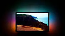 Bias lighting has been used since the early days of television in the form of "TV lamps", often taking the shape of an animal, that were set atop television sets and projected light onto the wall behind the set.[2] As of the 2000s, bias lights often use LEDs, attach to the backside of flat-panel displays, and draw power from a USB port.[2] Some bias lighting kits even use a webcam pointed at a TV or monitor screen to read colors and change television backlights accordingly.[3] They may also be integrated into the display. Some Philips televisions since 2002, for example, feature integrated bias lights with the brand name "Ambilight". Color-changing lights like this should not be used in professional editing environments or where image fidelity is important.