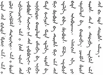 The following is a sample showing the Manchu translation of the Lord's Prayer from Gospel of Matthew chapter 6 verses 9–13, together with the corresponding English translation from the Authorized King James Version of 1611.