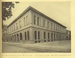The facade of the Central Civic Library of Turin in 1929. Side towards Corso Palestro and Via Bertrandi This article incorporates information from the Italian Wikipedia.