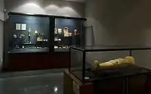 There is an Egyptian hall where there can be found authentic objects from the Ancient Egypt. It stresses for its singularity the little mummy of a five years old kid called Nesi, one of the five unique mummies that are nowadays preserved in Catalan museums. The Museum’s Egyptian collection was the first one in Catalonia and was donated in 1886 by Eduard Toda i Güell a diplomatic figure, writer and a close collaborator with Víctor Balaguer with Renaixença’s movement. Some of the pieces of the collection come from Sennedjem’s tomb in Deir el-Medina (west Thebes) where Eduard Toda collaborated.[3]