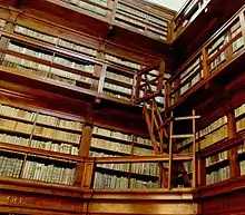 In the 1970s and 1980s, city officials became concerned by the growing number of patrons in combination with the building's structural issues and lack of and lack of space for storage and computer technology. The library began renovation in March 2008 and was reopened in 2011. Among the items requiring attention were the Teresiana's 18th-century walnut shelves, and the addition of new air conditioning, lighting, and wireless systems. All of the 44,000 books in the Teresian Rooms had to be removed while the shelves were restored, during which time the books were also under maintenance.[4] Following the restoration, several scholars used the data from the restoration of the print collection in studies of the paper degradation.[5]