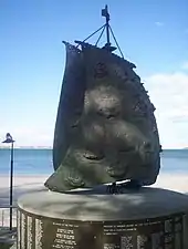 Commemorations were held throughout Australia in 1970. A commemorative 50 cent coin was issued.[1] A re-enactment of Cook's landing at Botany Bay was held on 29 April 1970.[2] The re-enactment was disrupted by university students, one of whom was dressed as James Cook, arriving at the point on speedboat.[3] The name of the place on the east coast which Cook is believed to have first sighted was renamed from Cape Everard to Point Hicks, the name Cook had given it.[4]