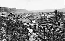 The branch line would branch off from the planned main line in the hamlet of Biebermühle where a junction station was to be built, run mainly along the Steinbach and end on the northern outskirts of Pirmasens at the military training ground. It was opened together with the Annweiler–Zweibrücken section of the main line on 25 November 1875.[9] The operator was the Palatine Ludwig Railway Company (Pfalzische Ludwigsbahn-Gesellschaft), which had already become part of the Palatinate Railways (Pfälzische Eisenbahnen) with its operational merger with the remaining Palatinate railways in 1870.