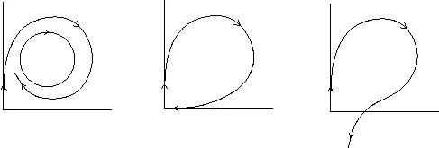 As increases from zero, a stable limit cycle emerges out of the origin via Hopf bifurcation. Here we plot the limit cycle parametrically, up to order . The exact computation is explained on the Hopf bifurcation page.