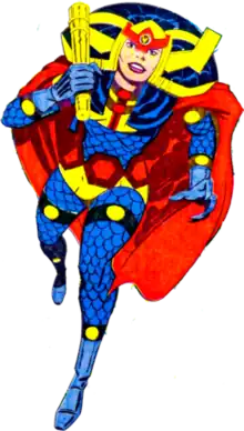 Big Barda is an antihero appearing in American comic books published by DC Comics. She first appeared in Mister Miracle #4 (October 1971), and was created by Jack Kirby.[1] Jack Kirby based Barda's physical appearance on Lainie Kazan, who had recently appeared topless in Playboy.[2] Mark Evanier, Kirby's assistant on the Fourth World comics, has explained the genesis of the character: "Jack based some of his characters (not all) on people in his life or in the news... the characterization between Scott 'Mister Miracle' Free and Barda was based largely—though with tongue in cheek—on the interplay between Kirby and his wife Roz".[3] In 2011, Big Barda was ranked 75th in Comics Buyer's Guide's "100 Sexiest Women in Comics" list.[4]