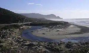 ![]() The creek flows under Big Creek Bridge and enters the ocean north of Heceta Head. | |
