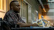 On September 13, 2021, Big E declared on Twitter that he would be cashing in his Money in the Bank contract for a WWE Championship match on that night's episode of Raw, which already had a WWE Championship match scheduled between champion Bobby Lashley and challenger Randy Orton.[120] Once Lashley defeated Orton in a 13-minute match, Big E cashed in for an immediate title match and pinned Lashley, winning the WWE Championship for the first time in his career, and celebrating with the rest of the New Day.[121] On the September 20 Raw, Big E lost two matches, first in a trios match pitting New Day against Roman Reigns (the Universal Champion) and the Usos, then the second in a triple threat match against Reigns and Lashley.[122] On the September 27 Raw, Big E defeated Lashley in a cage match for the WWE Championship.[123]