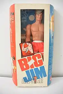 Big Jim was a line of action figure toys produced from 1972 through 1986 by Mattel for the North American and European markets. He was renamed Kid Acero in Latin America and, for a short period of time, Mark Strong in Europe. Originally inspired by G.I. Joe, the Big Jim line was smaller in size (closer to 10 inches in height compared to Joe's 12) and each figure included a push button in the back that made the character execute a karate chop action. The action figure's arms were made of a soft plastic/vinyl material and contained a mechanism that simulated the bulge of a biceps when the elbow was bent. Big Jim was less military-oriented than the G.I. Joe line, having more of a secret agent motif, but also had a large variety of outfits and situations available including sports, space exploration, martial arts, hunting, western, camping, fishing, and photography.