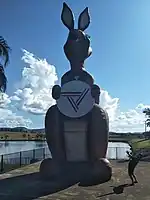 | The Big Bogan | Nyngan | 2015 | 3.6 m (12 ft) high | The Big Bogan is the brainchild of Reverend Graham McLeod from Nyngan's St Mark's Anglican Church.[14][15] Located on Pangee Street next to the railway lines. In 2022 a dog was added.[16] | ![]() Big Bogan, Nyngan, 2017 (01) |