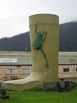 | The Big Trout | Adaminaby | 1973 | 10×3 m (32.8×9.8 ft) | Designed by Andy Lomnici, the Big Trout is located in the town of Adaminaby, near Lake Eucumbene in the Snowy Mountains. Opened in 1973, the trout is built from fiberglass over a steel frame.[37] | ![]() |