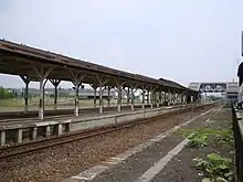 The station consists of one side platform and one island platform serving two tracks (platforms 2 and 3), as the track at the former platform 1 is no longer in place. The station building is connected to platforms 2 and 3 by a footbridge. The station has a "Midori no Madoguchi" staffed ticket office.