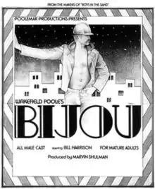 Bijou is an 1972 American gay pornographic film directed and edited by Wakefield Poole and starring Bill Harrison as a construction worker who witnesses a car accident and discovers an invitation to a club called Bijou in the purse of the victim.