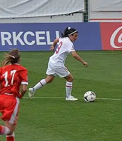 Bilgin Defterli (born 1 November 1980) is a Turkish women's football forward currently playing in the 2. Frauen-Bundesliga for Alemannia Aachen in Germany with jersey number 9. She has been a member of the Turkey women's national football team since 1999 and serves as their captain. Defterli is 160 cm (5 ft 3 in) tall.[1]