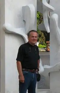 ![]() Bill Barrett with his marble sculpture, "Lexeme VIII," in Zell, Germany. | |