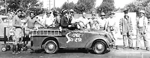 To make a long Foo short, here is the dope, and I do mean me. I was born in the state of frenzy, but for present purposes let's make it Indiana. At an early age my father died, and I was sent out into the world to make a living for my mother, one cat with a sore tail, and no kitten. This all happened in Nappanee, Indiana. My first job was running a popcorn machine for the local dime store. This is considered excellent training for a comic artist and no doubt accounts for a certain corny touch which so many of my gags seem to have. At 16, I was working in the art department of the Chicago Tribune. Having lost my eraser, I realized I could afford to make no more mistakes, so Scripps-Howard made the next one and hired me. For the next two years, I drew no crowds but plenty of drawings. My strip act laid an egg, the art editor threw it at me, and I was on my way to New York. After seven years of itch and drawing a kid comic for the New York Herald Tribune, I entered the magazine field. The following five freelance years were happy and profitable. Hundreds of my drawings infested the pages of Collier's, Saturday Evening Post, Life, Judge and Everybody's Weekly of London. This work drew the attention of the Tribune-News Syndicate and I was asked to submit a Sunday feature. The outcome was Smokey Stover, Spooky, the cat, seven daily cartoons and Foo. I have always liked firemen. And now that I'm being paid to draw about their adventures, I can tell you I'm just crazy about them.[8]