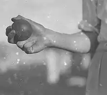 O'Reilly's cricket skills were largely self-taught; his family moved from town to town whenever his father was posted to a different school, he had little opportunity to attend coaching. He learned to play with his brothers, playing with a "gum-wood bat and a piece of banksia root chiselled down to make a ball."[8] He learned to bowl because his older brothers dominated the batting rights. His bowling action was far from the classic leg spin bowler's run-up and delivery, indeed, according to Wisden, "he was asked to make up the numbers in a Sydney junior match and, with a method that at first made everyone giggle, whipped out the opposition".[1][8] From a young age, O'Reilly was a tall and gangly player.[11]