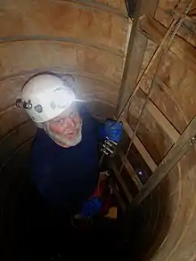 ![]() Steele descending into the depths of Carroll Cave, Missouri, 2015 | |