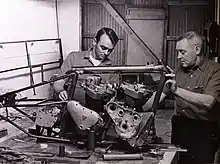 In 1962, Bill and his father spontaneously decided to build a small pseudo-dirt bike. Their self-designed VanTech frame was paired with bicycle wheels and one of the McCulloch kart engines with the souped-up VanTech manifold. This little prototype however, was the start of bigger things.[5] In early 1963, Ray Hook, the creator of Blendzall Racing Oil, hired VanTech to create a special bike for one of Blendzall's sponsored riders, which bike went on to win every 100cc race it was entered into.[6] With that success, Bill went on to design, fabricate and build two production bikes.[7]
