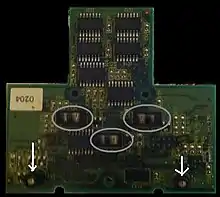 Tiny cameras are mounted on the printed circuit board