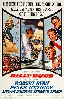 Billy Budd is a 1962 British historical drama-adventure film produced, directed, and co-written by Peter Ustinov.[3] Adapted from Louis O. Coxe and Robert H. Chapman's stage play version of Herman Melville's short novel Billy Budd, it stars Terence Stamp as Billy Budd, Robert Ryan as John Claggart, and Ustinov as Captain Vere. In his feature film debut, Stamp was nominated for an Academy Award for Best Supporting Actor, and received a Golden Globe Award for Most Promising Male Newcomer. The film was nominated for four BAFTAs.[4]