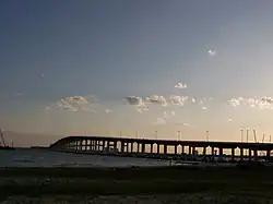 The Biloxi Bay Bridge is a bridge in the U.S. state of Mississippi which carries U.S. Route 90 (US 90) over Biloxi Bay between Biloxi and Ocean Springs. Though the bridge's ballast and accompanying railroad track was heavily damaged by Hurricane Katrina in August 2005, the structure remained and subsequently underwent major repairs.[1] It reopened to traffic on November 1, 2007. The span carries 6 lanes of traffic as well as a 12-foot (3.7 m) path for pedestrians and bicyclists on the Gulf side of the bridge.