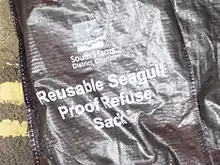A bin bag, rubbish bag (British English), garbage bag, bin liner, trash bag (American English) or refuse sack is a disposable bag used to contain solid waste. Such bags are useful to line the insides of waste containers to prevent the insides of the receptacle from becoming coated in waste material. Most bags today are made out of plastic, and are typically black, white, or green in color.[1]