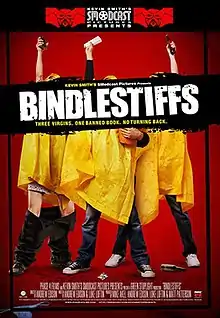 Bindlestiffs is a 2012 comedy film produced by Andrew Edison and Luke Loftin, the writers, editors, and main two stars, which also stars John Karna. The film was completed in 2011 but wasn't picked up until 2012 after its premiere at the Slamdance Film Festival, where it won the Audience Award for Best Narrative Feature. It was picked up for distribution in 2012 by Kevin Smith under his SModcast Pictures Presents label, in association with Phase 4 Films, the first under this label. It has received a somewhat cult status from the internet, becoming available on VOD, iTunes, and DVD from Redbox.