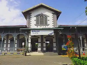 Binjai Station, (BIJ)—formerly known as Timbang Langkat Station—is railway station located in Binjai, Indonesia, in the area near Binjai Bus station. The station is located at an elevation of +29.30 m (96.1 ft), and is situated in the Regional Division Railway I North Sumatra and Aceh. Unlike most other stations in North Sumatra which have different architecture, Binjai station remains a colonial-style building from the time of its first construction.