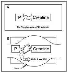 When the Phosphagen System has been depleted of phosphocreatine (creatine phosphate), the resulting AMP produced from the adenylate kinase (myokinase) reaction is primarily regulated by the Purine Nucleotide Cycle.[5]