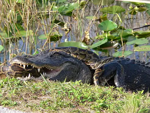 While the study of invasive species can be done within many subfields of biology, the majority of research on invasive organisms has been within the field of ecology and geography where the issue of biological invasions is especially important. Much of the study of invasive species has been influenced by Charles Elton's 1958 book The Ecology of Invasion by Animals and Plants which drew upon the limited amount of research done within disparate fields to create a generalized picture of biological invasions.[18][19] Studies on invasive species remained sparse until the 1990s when research in the field experienced a large amount of growth which continues to this day.[19] This research, which has largely consisted of field observational studies, has disproportionately been concerned with terrestrial plants.[19] The rapid growth of the field has driven a need to standardize the language used to describe invasive species and events. Despite this, little standard terminology exists within the study of invasive species which itself lacks any official designation but is commonly referred to as "invasion ecology" or more generally "invasion biology".[18][19] This lack of standard terminology is a significant problem, and has largely arisen due to the interdisciplinary nature of the field which borrows terms from numerous disciplines such as agriculture, zoology, and pathology, as well as due to studies on invasive species being commonly performed in isolation of one another. Invasive species often thrive because there are no predators that hunt them in their new locations. Many invasive species are destroying habitats where plants and animals naturally live.[20][18]