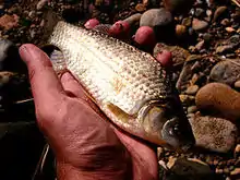Ten species of fish commonly seen in Japan were found in the Dōkan Moat including common carp, Carassius cuvieri, Carassius auratus langsdorfii, Misgurnus anguillicaudatus and stone moroko.[28] In the Hasuike Moat, northern snakehead was confirmed in addition. DNA studies of the obtained Carassius auratus langsdorfii revealed that all fish were triploidy females or tetraploidy females. They reproduce in a clone-like fashion, by ameiotic parthenogenesis. The same phenomenon was also seen in the same species of fish in the moat of Hiroshima castle, Hiroshima Prefecture. The researcher analyzed it by the cytoflow method.[29]
