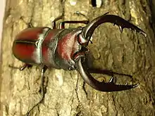 According to the survey between 1996 and 1998, three families and 738 species of Beetles were confirmed in the Palace including Prosopocoilus inclinatus, which is rarely seen in central Tokyo.[39] Oomidzusumashi or a kind of whirligig beetle which has become extinct in central Tokyo was also confirmed. Beetles in the Palace suggests close relationships with those in the Izu Peninsula and Miura Peninsula. The presence of chairochibigengoro, or a kind of Dytiscidae, which is seen near the sea, may suggest that the Palace was once near the seashore.[40] 2 families and 39 species of longhorn beetle were confirmed in the Palace. Five families and 161 species of rove beetles were confirmed between 1996 and 1997 and the following monitoring.