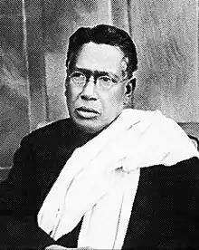 Bipin Chandra Pal was born in the village of Poil, Habiganj, Sylhet District, Bengal Presidency of British India, in a Hindu Bengali Kayastha family.[2] His father was Ramchandra Pal, a Persian scholar, and small landowner. He studied and taught at the Church Mission Society College (now the St. Paul's Cathedral Mission College), an affiliated college of the University of Calcutta.[3] He also studied comparative theology for a year (1899-1900) at New Manchester College, Oxford in England but did not finish the course.[4] His son was Niranjan Pal, one of the founders of Bombay Talkies. One son-in-law was the ICS officer, S. K. Dey, who later became a union minister. His other son-in-law was freedom fighter Ullaskar Dutta who married Lila Dutta his childhood love