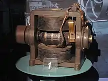Later designs, from around 1900, became more compact with shorter, more efficient magnetic circuits. The field coils now moved into short, squat internal coils around the pole pieces themselves.[1] The remainder of the magnetic circuit was a double-sided circular path around the casing of the motor. Whilst primarily designed to be more efficient, this also gave a far more compact layout in terms of space.