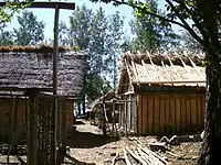The archaeological remains are located in the north part of Björkö and span an area of about 7 hectares (17 acres). The remains are both burial-sites and buildings, and in the south part of this area, there is also a hill fort called "Borgen" ("The Fortress").[21] The construction technique of the buildings is still unknown, but the main material was wood. An adjacent island holds the remains of Hovgården, an estate that housed the King's retinue during visits.