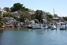 Birchgrove was the southern portal of the first tunnel under Sydney Harbour. The tunnel was dug by the New South Wales Government Railways from Greenwich to provide a reliable way to get electricity from the Pyrmont Power Station to the tram network on the north shore. Cables had previously been laid on the floor of the harbour, but damaged by ships dragging their anchors. The tunnel was commenced in 1913 and excavated by hand, completed in 1924. Part of the tunnel is through the silt at the bottom of the river, so required constant pumping until it was allowed to flood in 1930 and abandoned from 1969.[7] The tunnel was excavated almost entirely from the northern side, as the residents on Long Nose Point at Balmain (now Birchgrove) successfully objected to the noise of the compressor powering pneumatic drills.[8] The tunnel passes between the floor of the harbour and the Balmain coal mine further below the harbour.[9] The tunnel is excavated entirely through Hawkesbury sandstone which lies below the silt and sediment which form the floor of the harbour. At its lowest point, it is 236 feet (72 m) below sea level.[10] The tunnel is listed on the New South Wales State Heritage Register.[11][12]